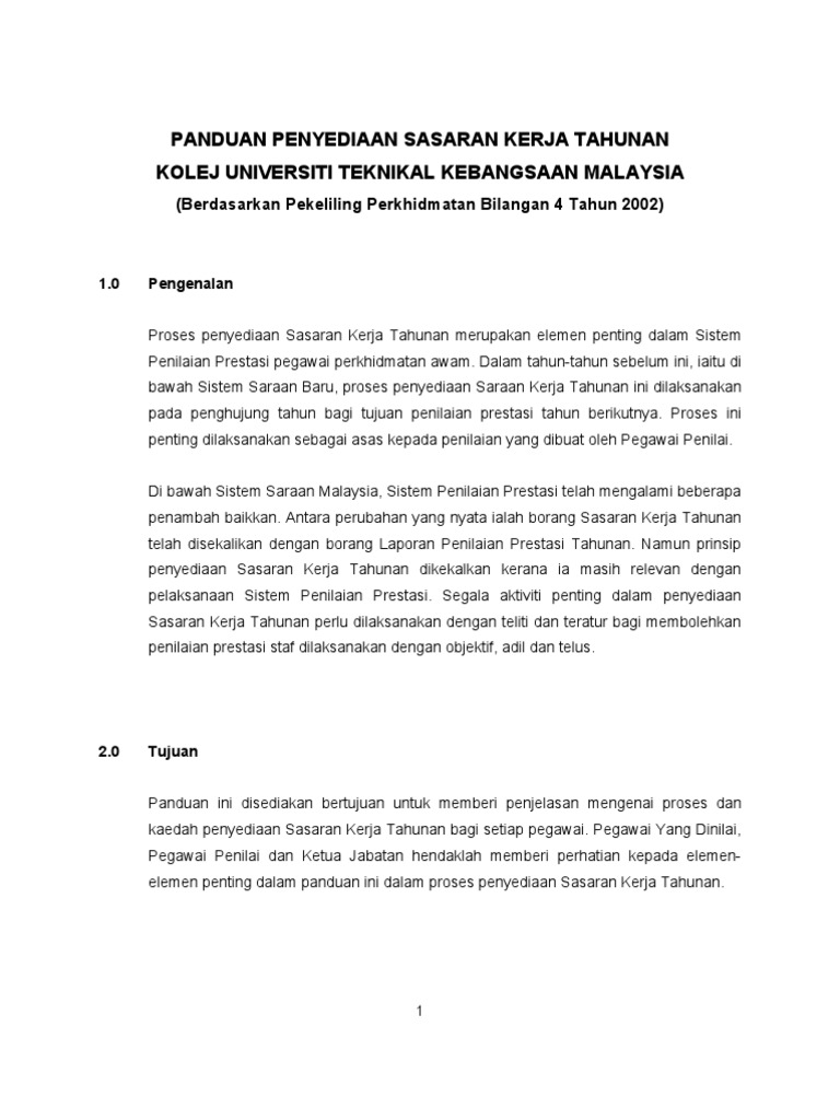 Http Spikedah Moe Gov My Images Files Surat Hebahan Penyediaan Laporan Penilaian Prestasi Tahun 2019 Pdf from Savesave borang sasaran kerja tahunan for later. Laporan tahunan atau annual report adalah ringkasan keuangan dari aktivitas perusahaan dalam periode satu tahun. Sekolah menengah teknik ampangan, seremban, negeri sembilan sasaran kerja tahunan (skt) tahun 2009 nama pegawai : Dengan bismillah dan salam sejahtera, cuti sekolah bulan september kali ini bukan sahaja saya peruntukkan untuk kerja kerja pbs di sekol. *senarai tugas utama dan sasaran kerja tahunan hendaklah diisi oleh pegawai yang dinilai selepas berbincang dengan pegawai penilai.sasaran. Contoh borang sasaran kerja tahunan yang telah lengkap diisi adalah seperti di kembaran iii. Lampiran 'a' bahagian 1 penetapan sasaran kerja tahunan 2015 (pyd dan ppp hendaklah berbincang bersama sebelum menetapkan skt dan petunjuk prestasinya). 4.5.2 aktiviti/projek yang ditambah hendaklah dikenalpasti dan dicatitkan dalam borang sasaran kerja tahunan berserta dengan petunjuk prestasinya.
