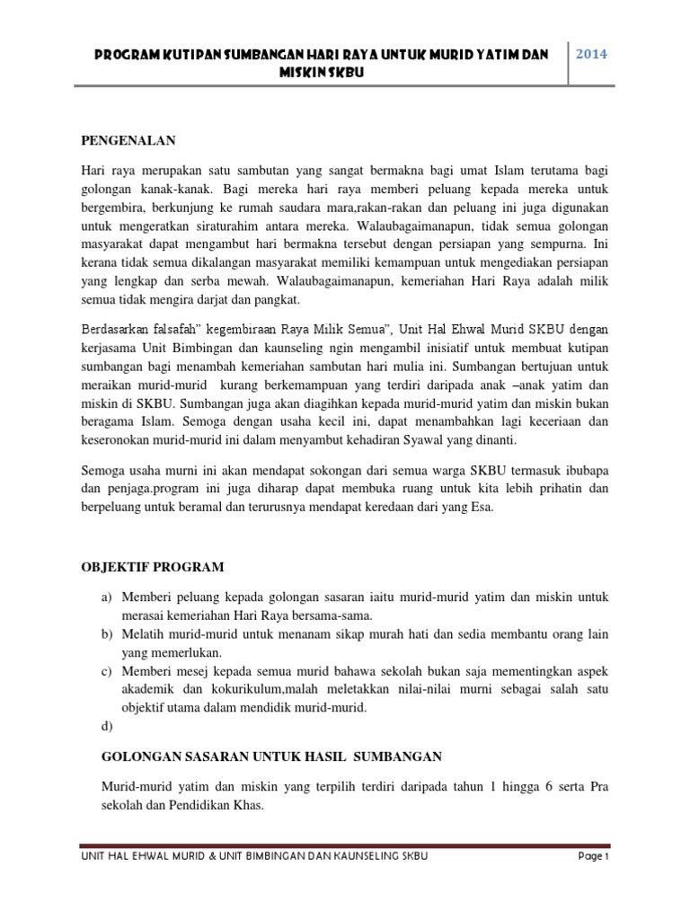 Manggis 42700 banting selangor 2012 pendahuluan makmal komputer di kertas kerja ini bertujuan untuk memohon dana sumbangan bagi membangunkan, membaik pulih serta menambah kecerian bagi makmal. 1.0 1.0 penda pendahul hulua uan n kertas kerja ini bertujuan untuk pertimbangan pibg bagi meluluskan meluluskan peruntukan kewangan untuk. Copyright kertas kerja memohon sumbangan makanan dan minuman murid pertandingan catur 2014. Kami menerima segala jenis sumbangan, baik berupa dana, sembako, pakaian bekas, maupun barang kebutuhan lainnya, sesuai keikhlasan dari warga perumahan cipaganti residence sekalian. Hasil sumbangan yang yang telah terkumpul akan segera kami salurkan langsung kepada korban maka kami dari tim reuni akbar bermaksud untuk memohon kepada bapak/ibu/saudara(i).