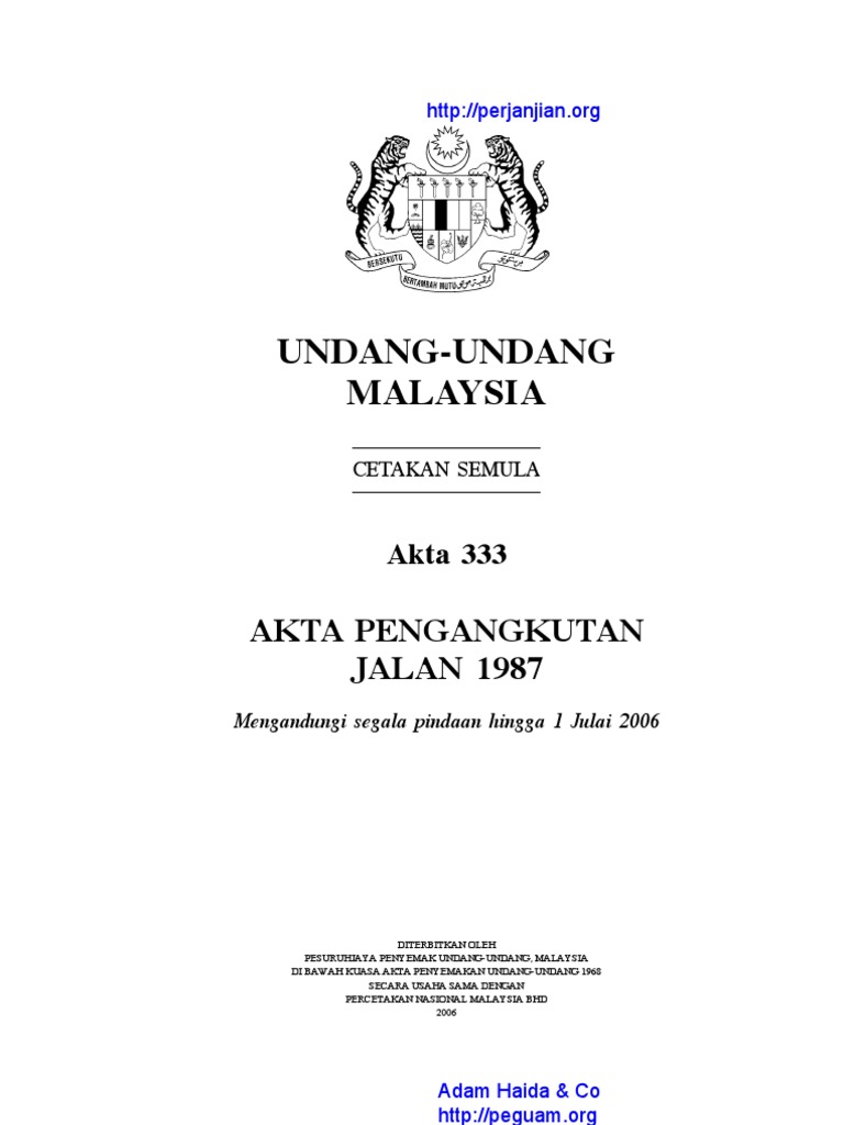 Akta Pengangkutan Jalan Malaysia from imgv2-1-f.scribdassets.com Akta pengangkutan awam darat (akta 715) serta. Sebagaimana pada 1 februari 2013. Seksyen 114 kuasa pegawai pengangkutan jalan dalam penyiasatan seksyen 115 kewajipan memberi maklumat dan penggunaan pernyataan sebagai keterangan seksyen 116 siapa boleh mendakwa. Kementerian juga akan memberikan fokus untuk mendidik dan memberi kesedaran. .merupakan kesalahan di bawah seksyen 50(3) akta pengangkutan jalan 1987. Akta pengangkutan jalan 1987 mewajibkan semua kenderaan perdagangan menjalani pemeriksaan berkala di puspakom setiap 6 bulan. Akta pengangkutan jalan 1987(akta 333). Kes yang masih dalam tindakan senarai hitam.