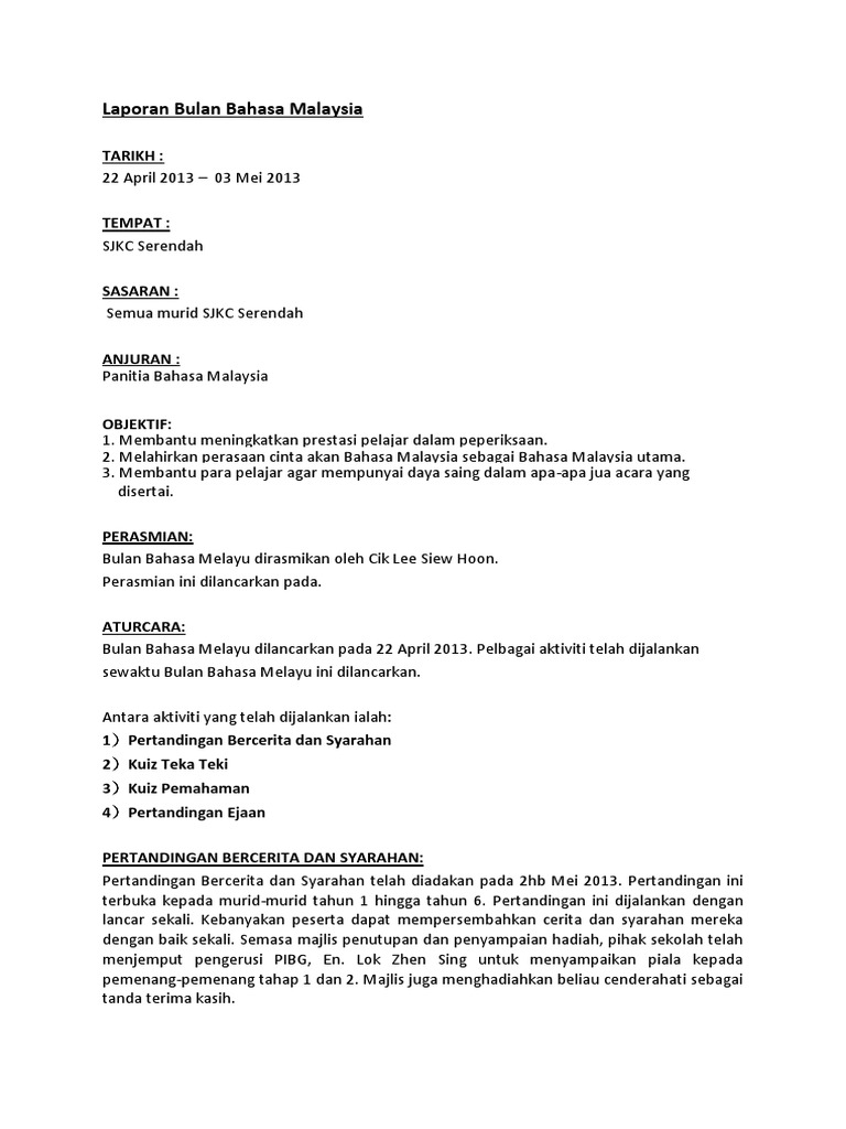 Laporan Bulan Bahasa Malaysia from imgv2-2-f.scribdassets.com Dieja dalam sistem ejaan rumi. Huruf e melambangkan dua bunyi, iaitu e pepet dan e taling. Angkatan sasterwan 50 yang ditubuhkan sekitar bulan ogos 1950 kemudiannya menjadikan ejaan fajar asia ini sebagai ejaan rasmi mereka. 2 sistem ejaan sistem ejaan diperkenalkan oleh r.j.wilkinson pada tahun 1902. Bulan dalam sistem penanggalan merupakan satuan waktu berdasarkan pergerakan bulan. Selamat dan bahagia dalam tahun shaka 605, pada sebelas haribulan terang dari bulan waishaka baginda naik kapal aturan ejaan bagi tulisan jawi yang digunakan dalam bahasa melayu sekarang ialah sistem ejaan jawi yang disempurnakan yang disahkan. Ejaan ini merupakan ejaan yang ketiga dalam sejarah bahasa indonesia. Bagaimana kamu mengucapkan dalam bahasa melayu?